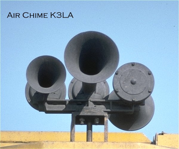 K3LA or K3HA sound samples:Santa Fe, various locomotives:Sample 1...582kB...26 seconds Sample 2...258kB...11 seconds Sample 3...523kB...24 seconds Sample 4...304kB...14 seconds Union Pacific, various locomotives: Sample 1...310kB...14 seconds Sample 2...301kB...13 seconds When bad things happen to good horns:
