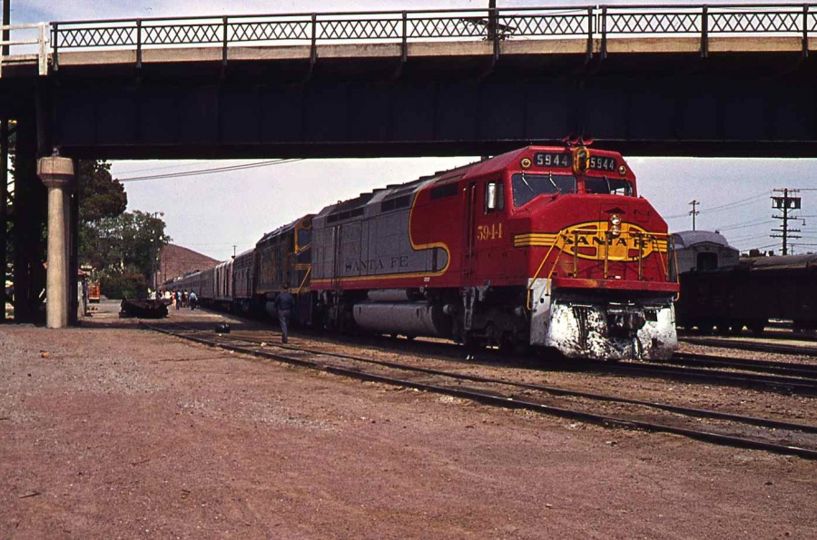 the 5944 on the point of the last eastbound San Francisco Chief as it made its station stop at Barstow, CA.