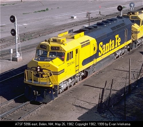 The photo at left shows 5946 leading an eastbound Santa Fe freight west of Dalies, NM in 1980.