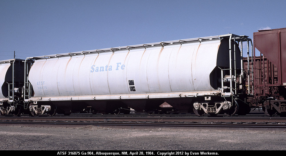 These leased four-bay cylindrical hoppers were built by National Steel Car in 1979-80 and had a capacity of 4650 cubic feet. The photos illustrate three different painting and lettering patterns.