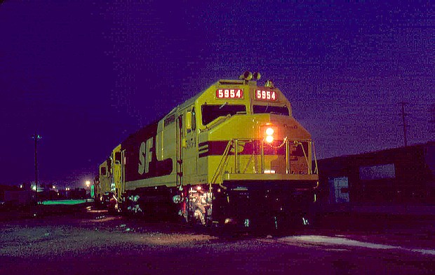 F45 5954 glows at Watson Yard near Long Beach, CA in May 1986. Bob Finan photo.