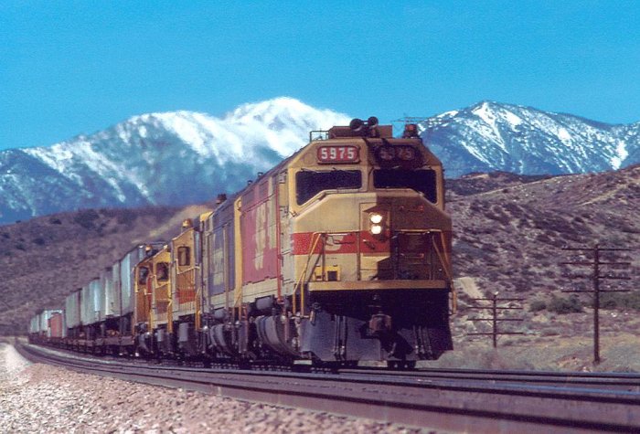 F45 5975 east drifts downgrade near the Martinez Spur east of Summit, CA. Bill Morrison photo.
