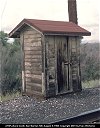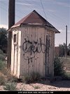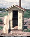 Booths also survived at nearly every siding on the line from Belen, NM to El Paso, TX in the 1980's. On this line, though, it seemed as though virtually every booth was different. We begin at San Acacia, NM, north of Socorro, with a booth considerably wider than Chisum's, and clad in clapboard siding. | ||||